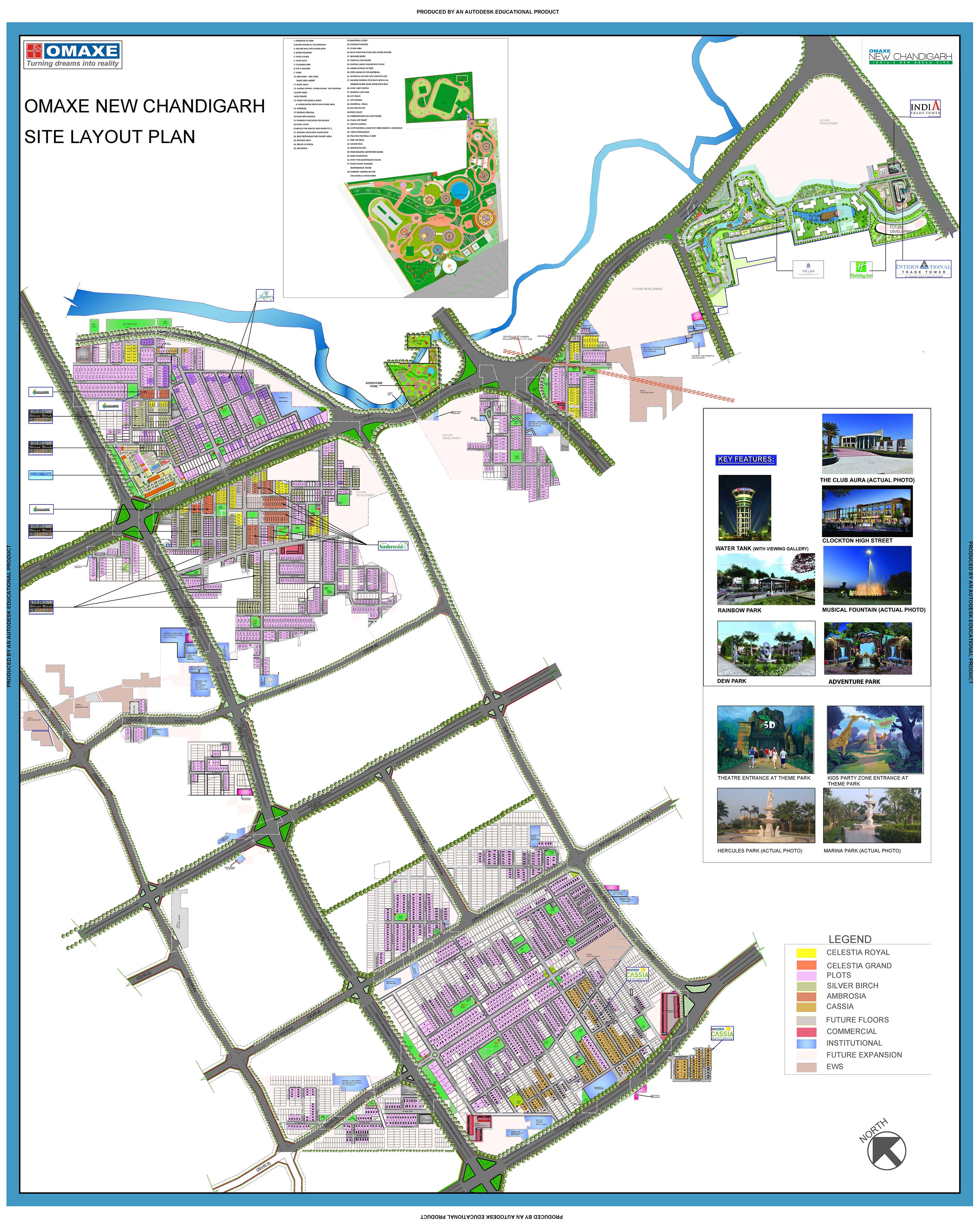 Facilities like schools, office-cum-shopping complex and space for recreational activities like amusement parks enthrall the township. The township is also home to one of Punjab?s tallest commercial hub, India Trade Tower. Infrastructure including educational institutions, healthcare, hospitality, landscaped gardens, children park, jogging track, underground drainage, medical facility, club with ultra-modern facilities to name a few add to the advantage of Omaxe New Chandigarh.